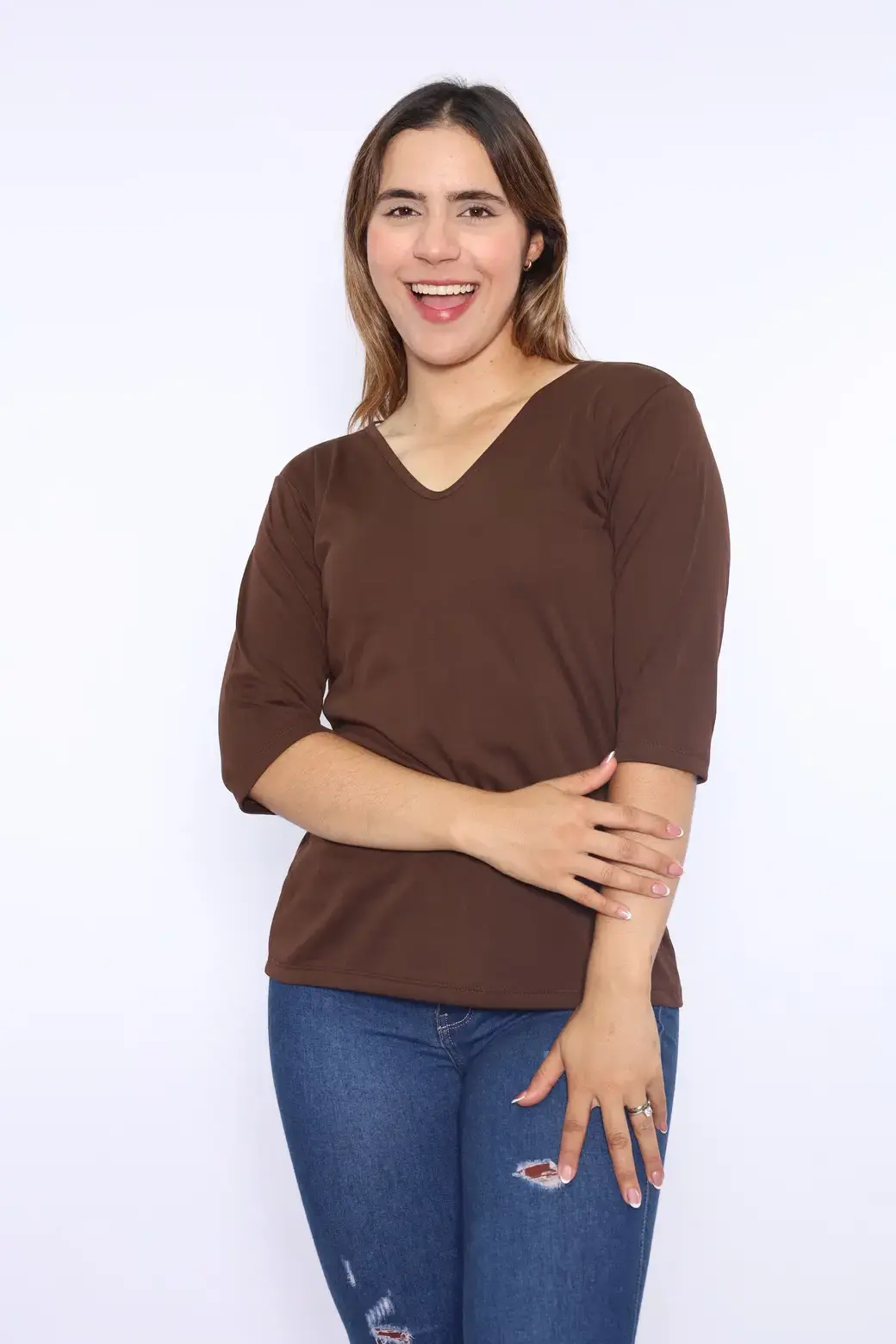 Cuello V color cafe