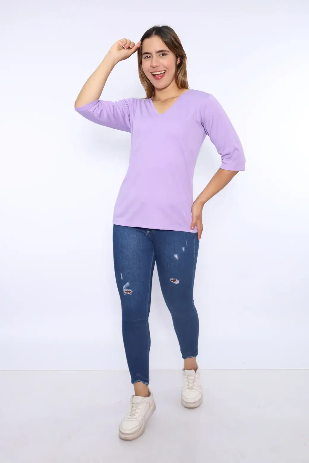 Cuello V color lila