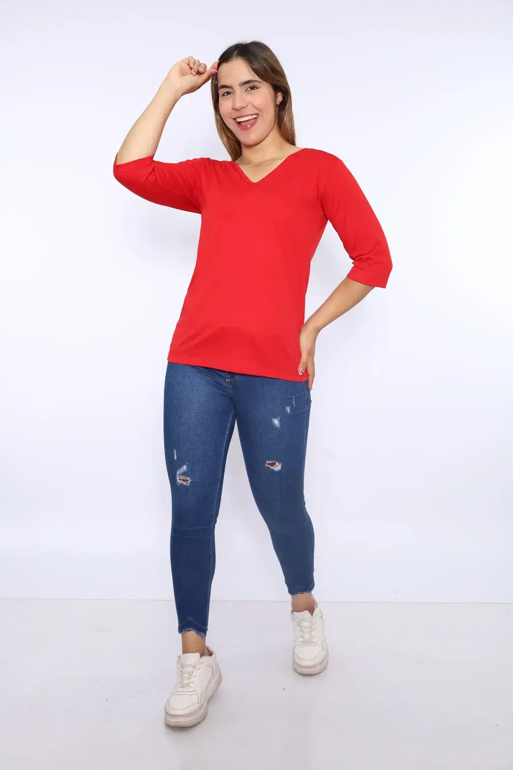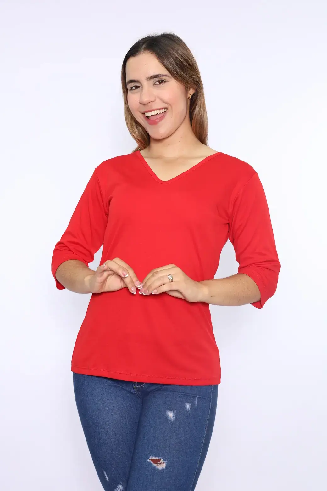 Cuello V color rojo