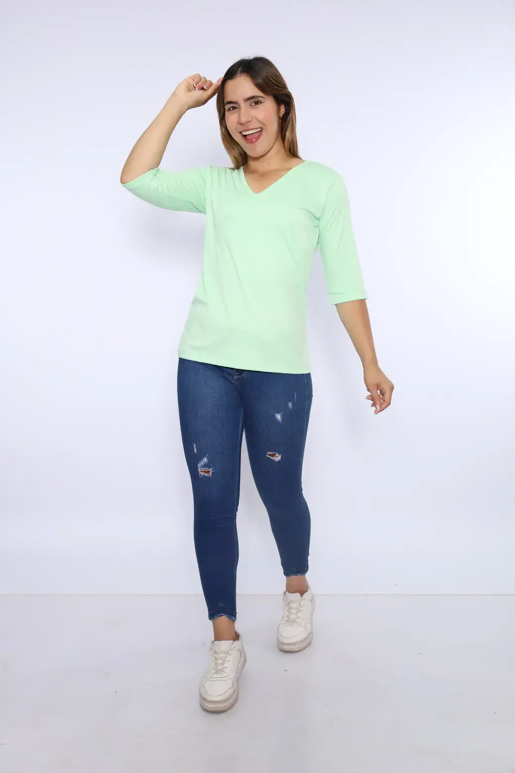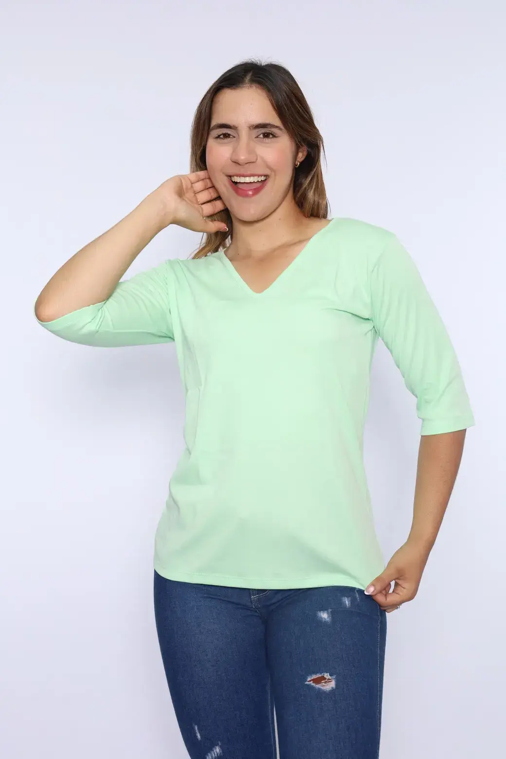 Cuello V color verde menta