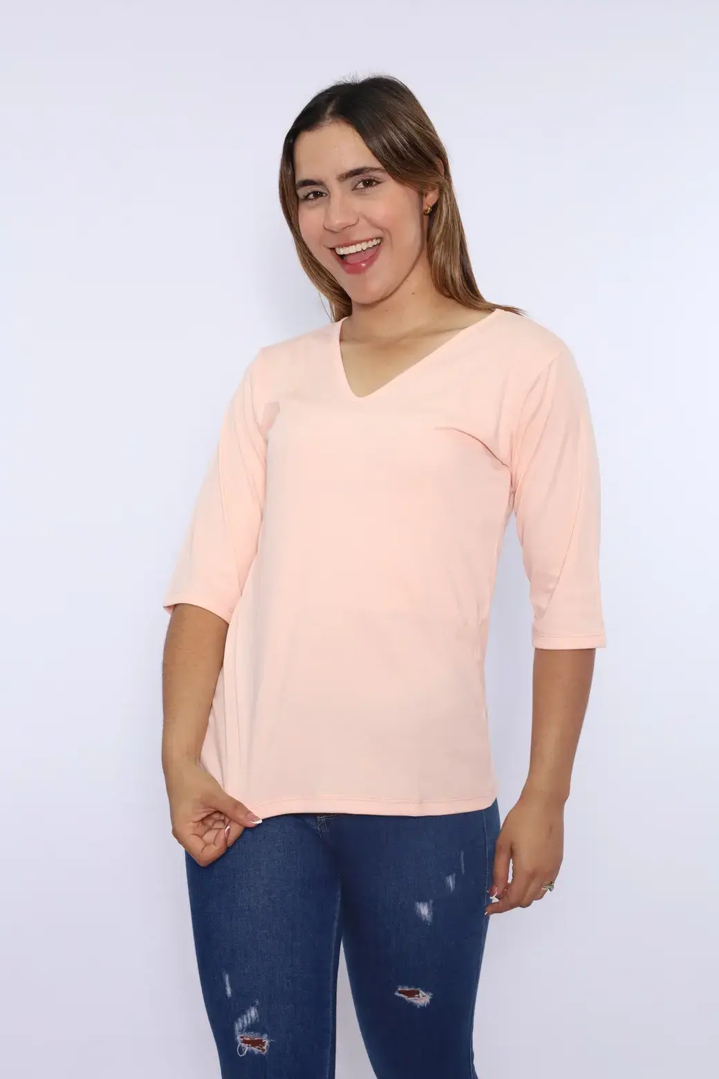 Cuello V color rosa pastel