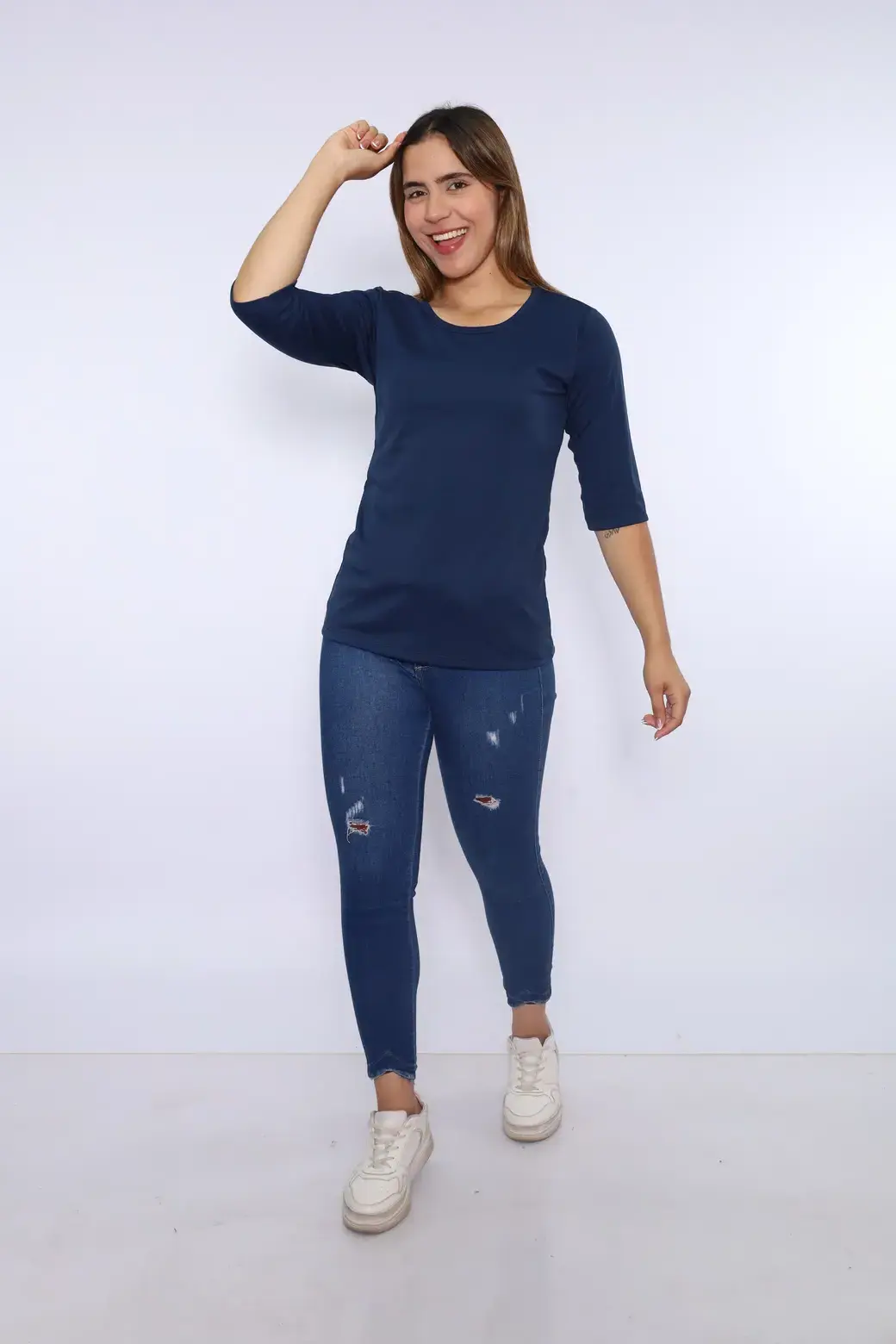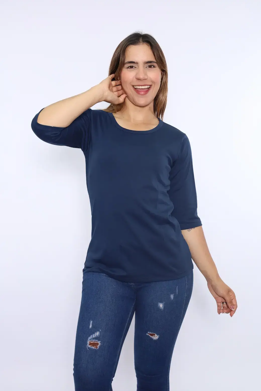 Cuello redondo color azul oscuro
