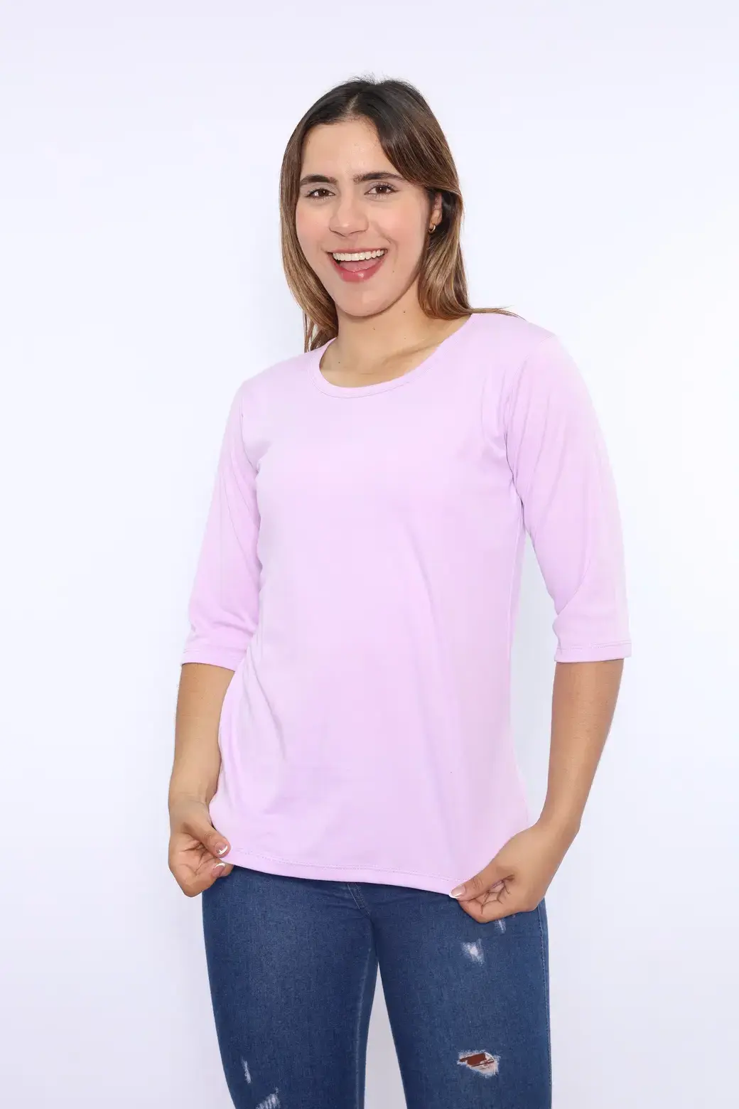Cuello redondo color rosa